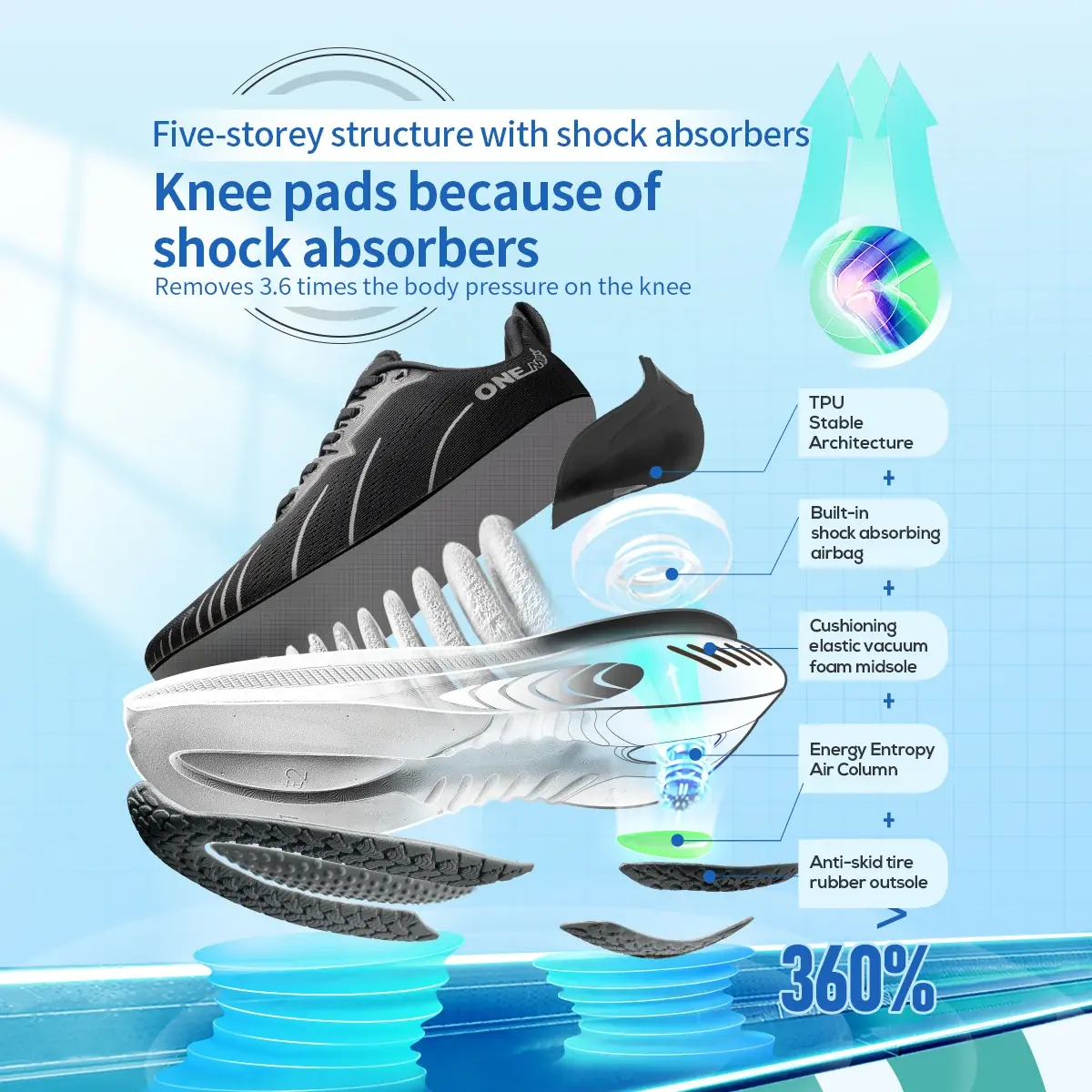 • تقنية امتصاص الصدمات:تم تصميم ميزة ONEMIX مع امتصاص الصدمات ، مما يوفر الراحة والحماية لقدميك أثناء الركض لمسافات طويلة. مثالية لسباقات الماراثون وغيرها من أحداث التحمل.